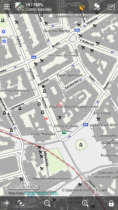 Locus Maps center of Prague with and without satellite image map overlay: